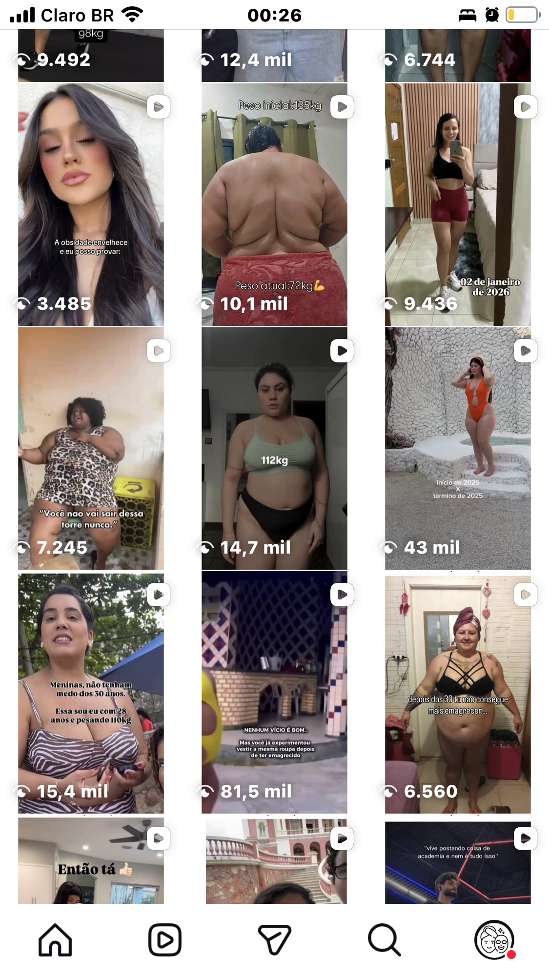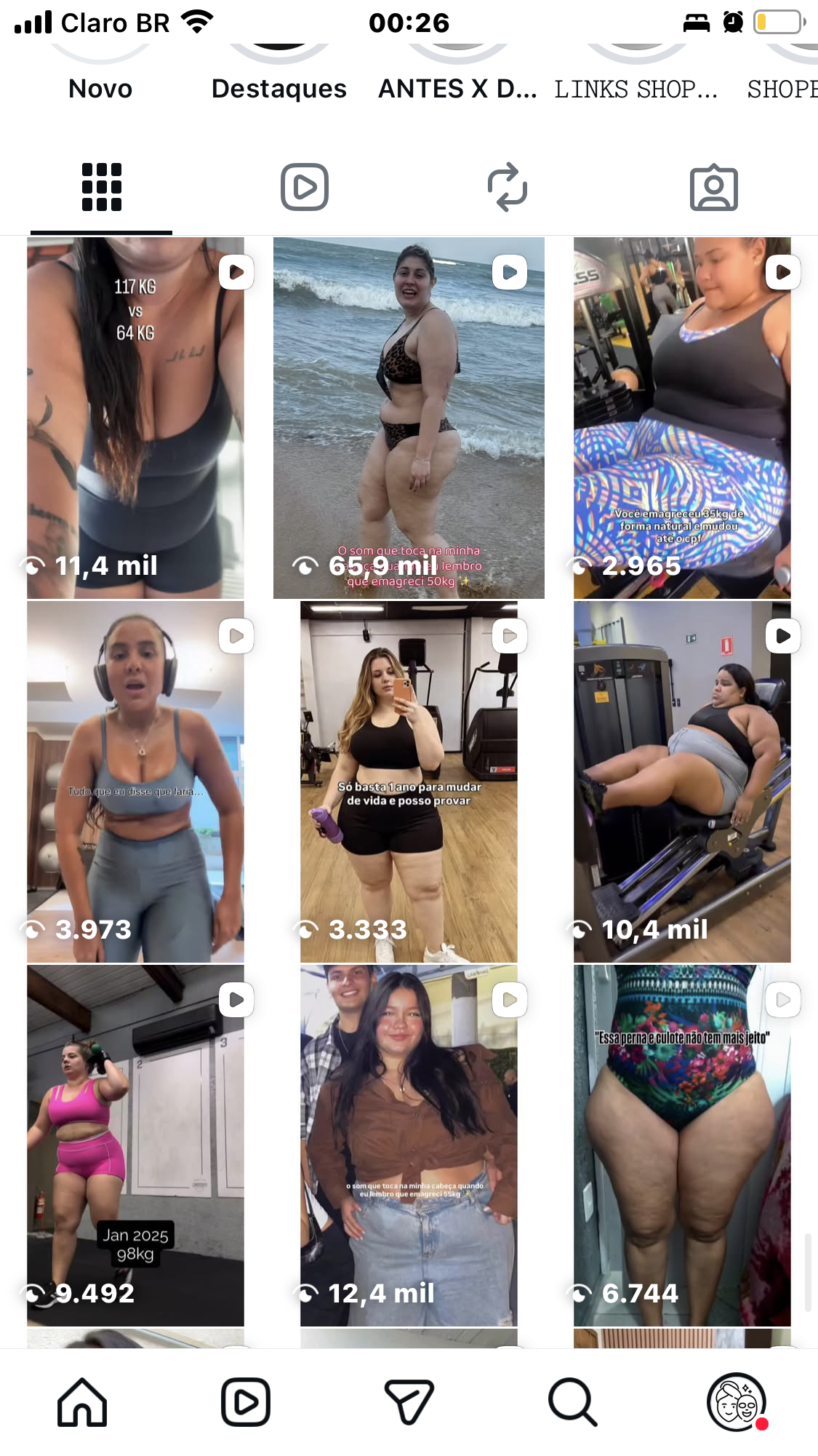 Os posts são pensados para causar impacto imediato, gerar identificação e aumentar o engajamento, explorando o contraste visual entre o início e o resultado do processo de emagrecimento. A página atrai um público interessado em transformação corporal, saúde, estética e mudança de hábitos.