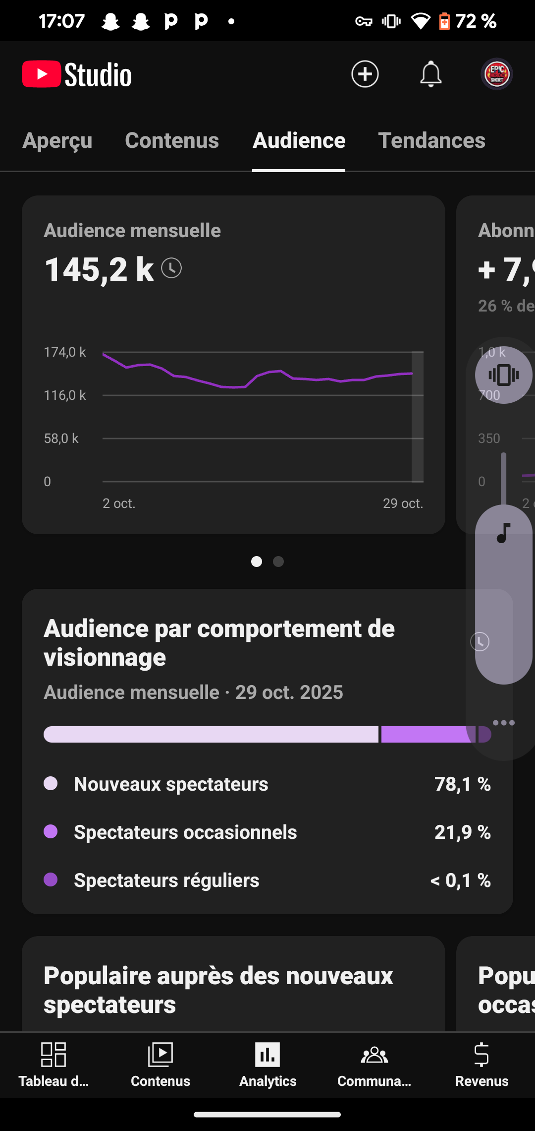 Créneau : YouTube Shorts super-héroïques & motivants (Marvel/DC-inspired, IA). Stats : 44000 abonnés, 413000 utilisateurs mensuels, (Shorts Fund). Public : 50 % France, 16 % Côte d’Ivoire, 6 % Congo Kinshasa. Pourquoi acheter : Niche virale, monétisée, audience Afrique/FR en croissance, scalable (IA). Clean, transferable. Prix : 150 $ Analytics + guide inclus.
