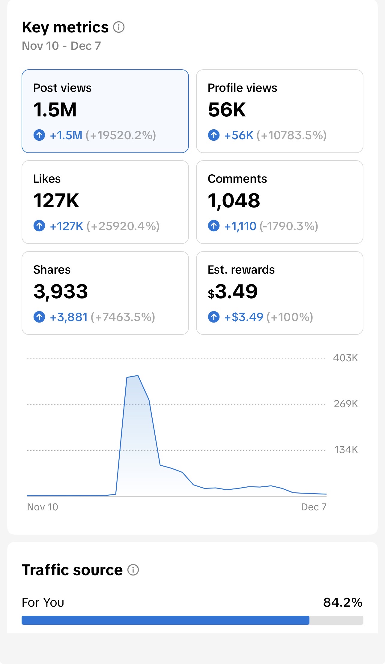 the account grows day by day and it’s a fast moving account. The account is fully monetized and it’s earn money according to how often the new user post videos. I don’t usually post that much and I do get over 100 dollars in one month. I needed money so bad that was why I wanted to sell it