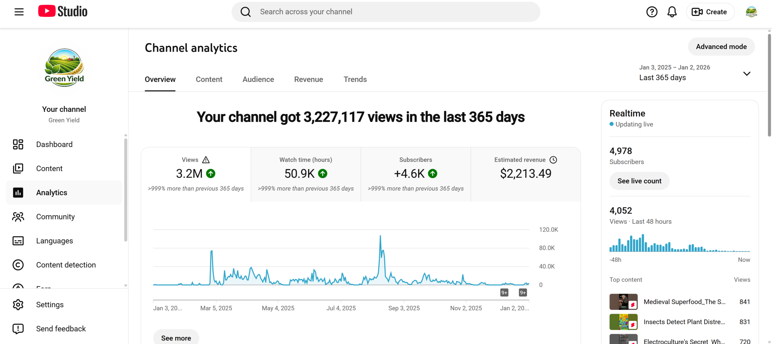 Green Yield | Monetized YouTube Channel for Sale | 4,970 Subs | $2,000+ Revenue | 1M+ Views | US/UK Audience