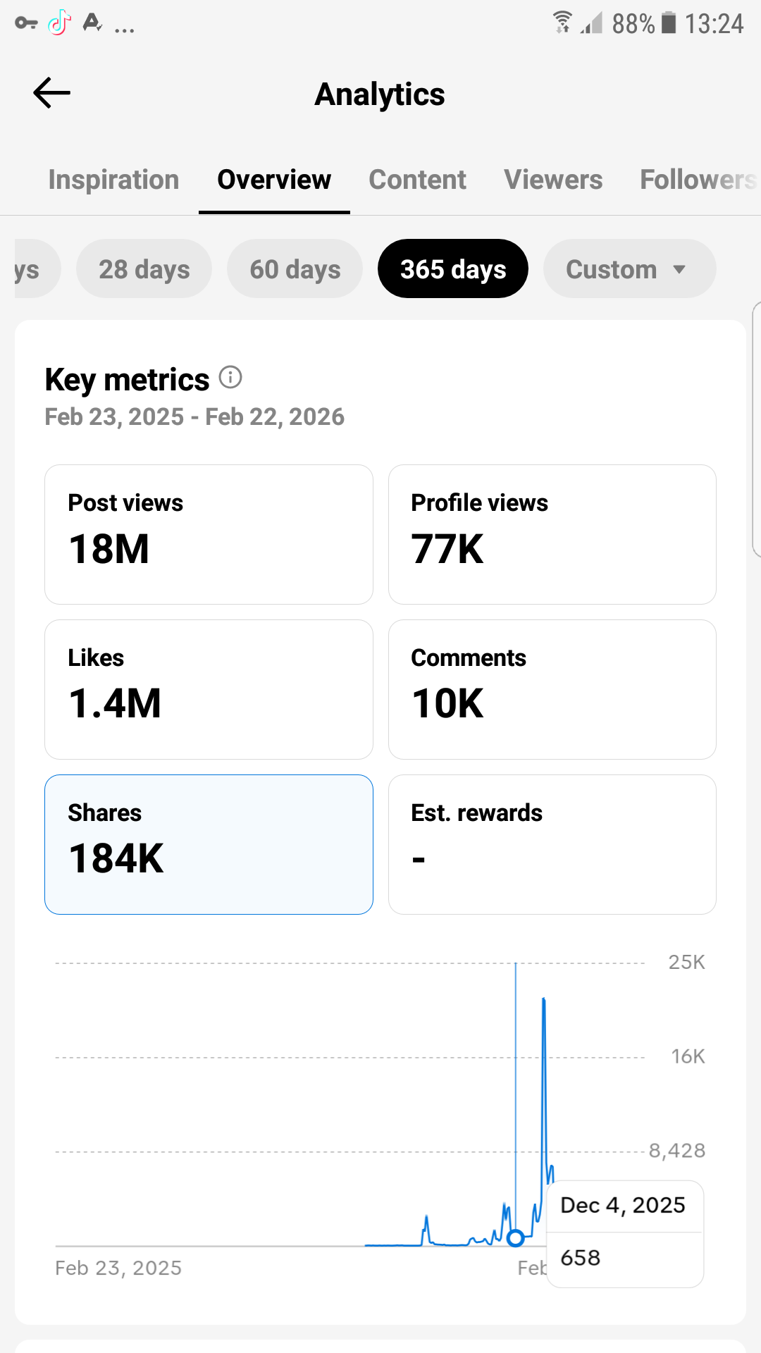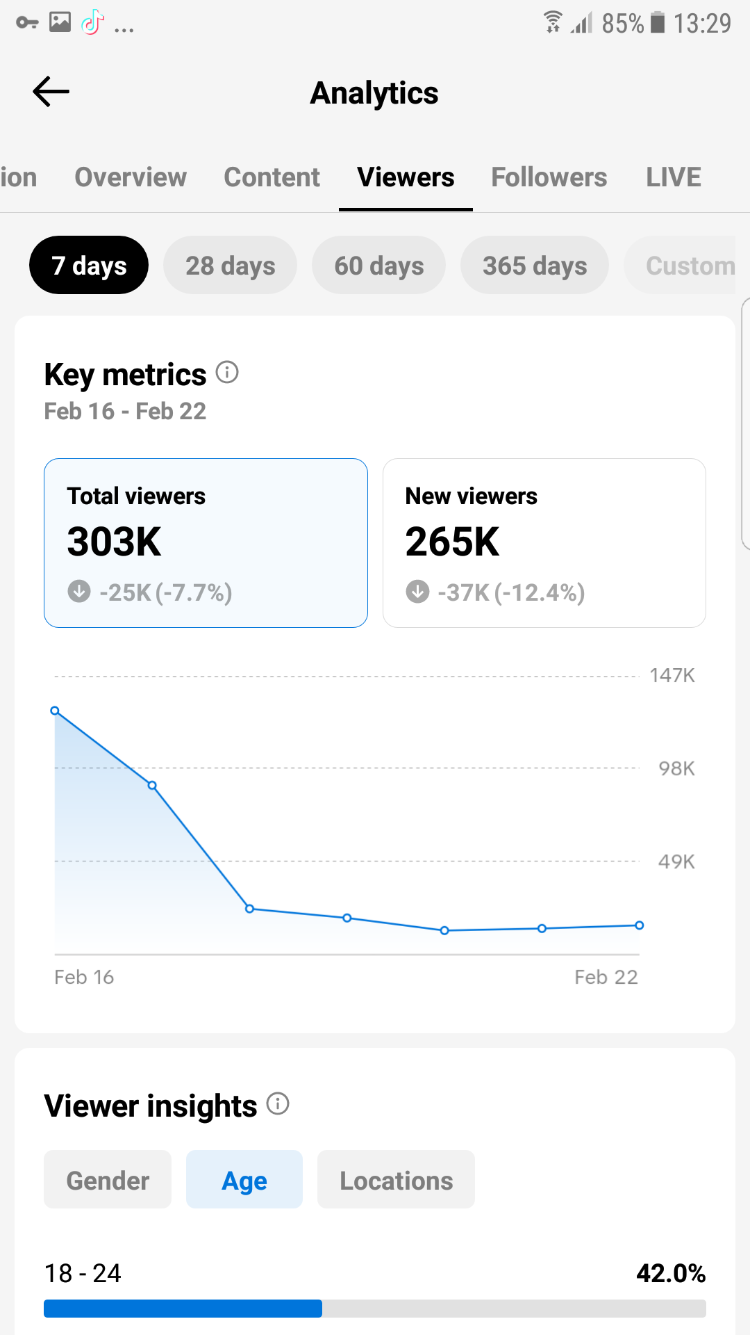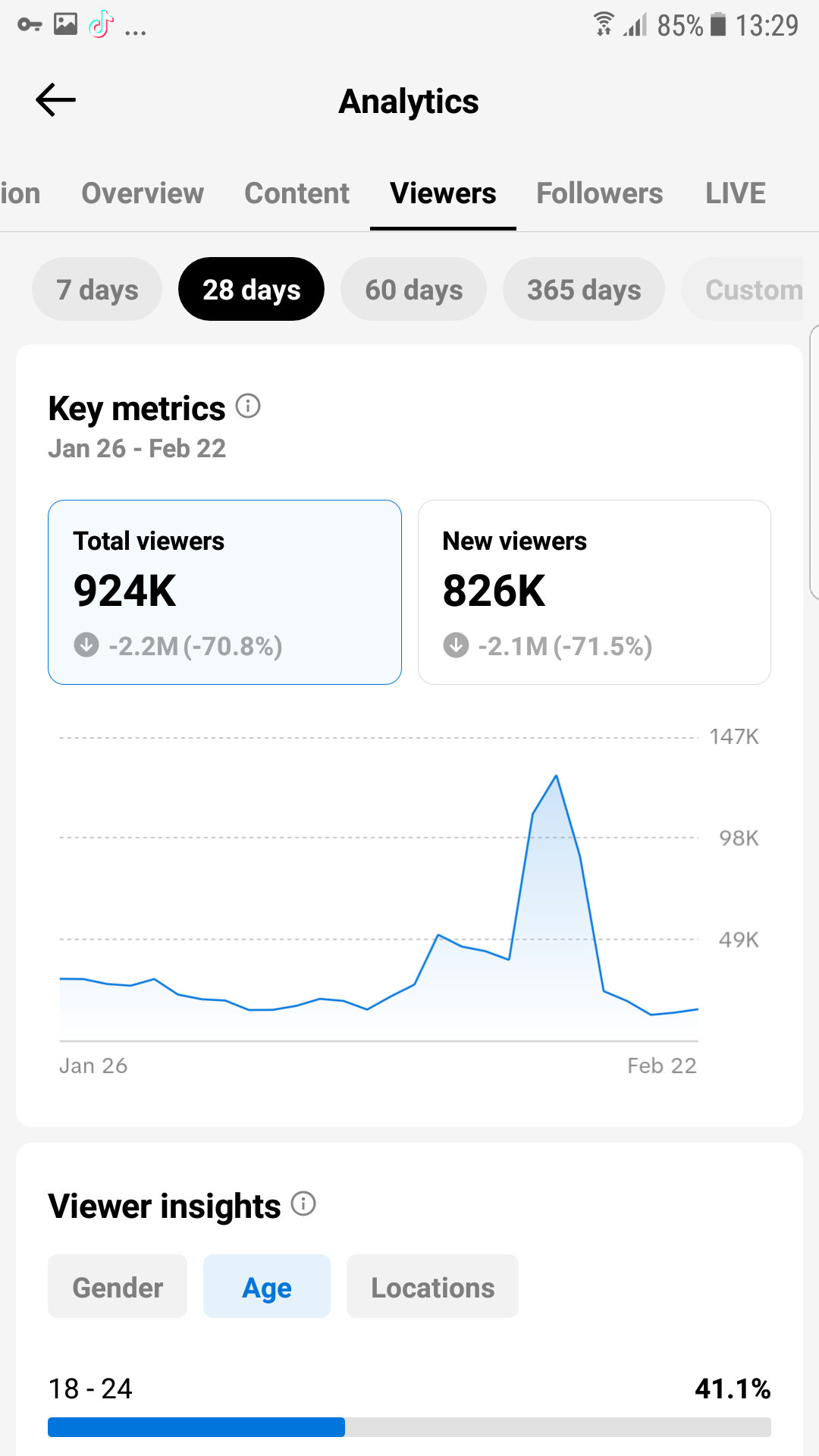 In the last 28 days alone, the account generated approximately 900K views, even with reduced posting activity.