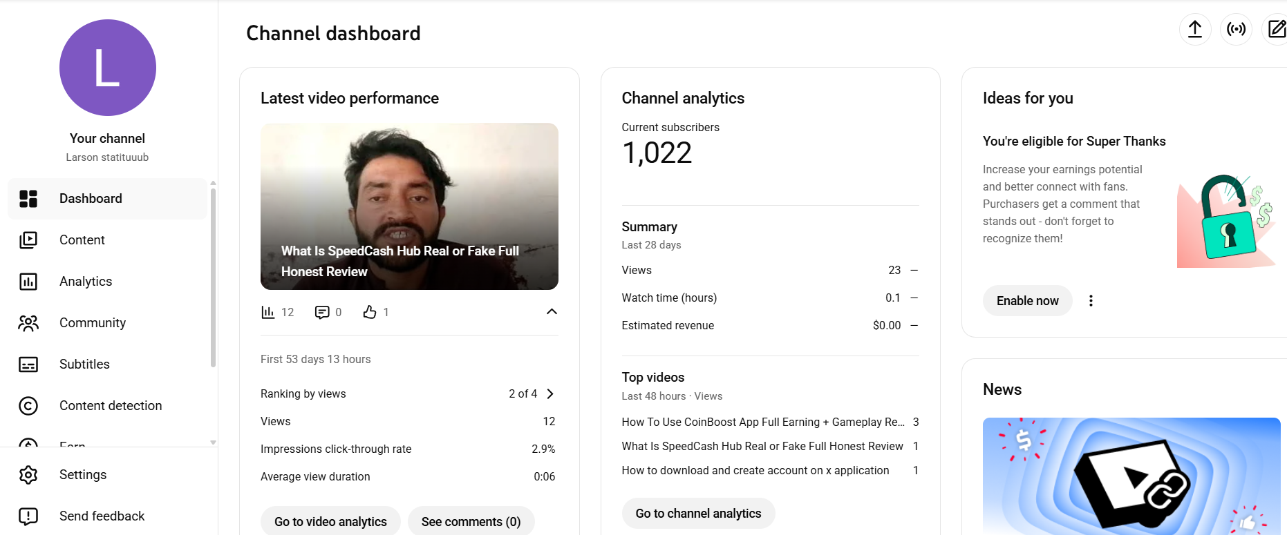 This is an active YouTube channel focused on app reviews and tutorials. It features content such as step-by-step guides on using mobile applications and earning apps. The channel is already established, has recent activity, and is ready for new ownership. Includes: ✔ Channel link & access ✔ All uploaded content ✔ Owner transfer support Status: Monetization can be confirmed by the current owner via YouTube Studio (not publicly visible). This listing is ideal for creators or entrepreneurs looking to grow or rebrand an existing channel.