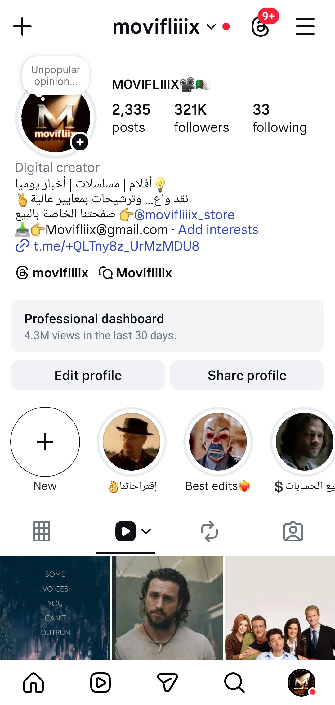 Account instagram has millions of viewers and likes with cinema content