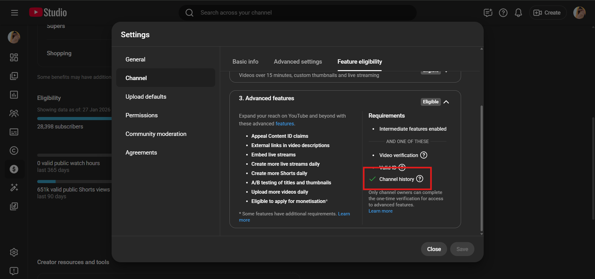 ✅ Channel has ADVANCED features enabled