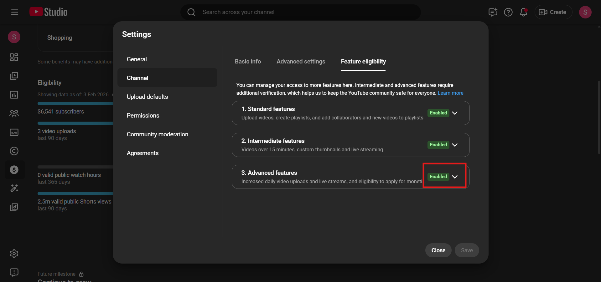✅ Channel has ADVANCED features enabled