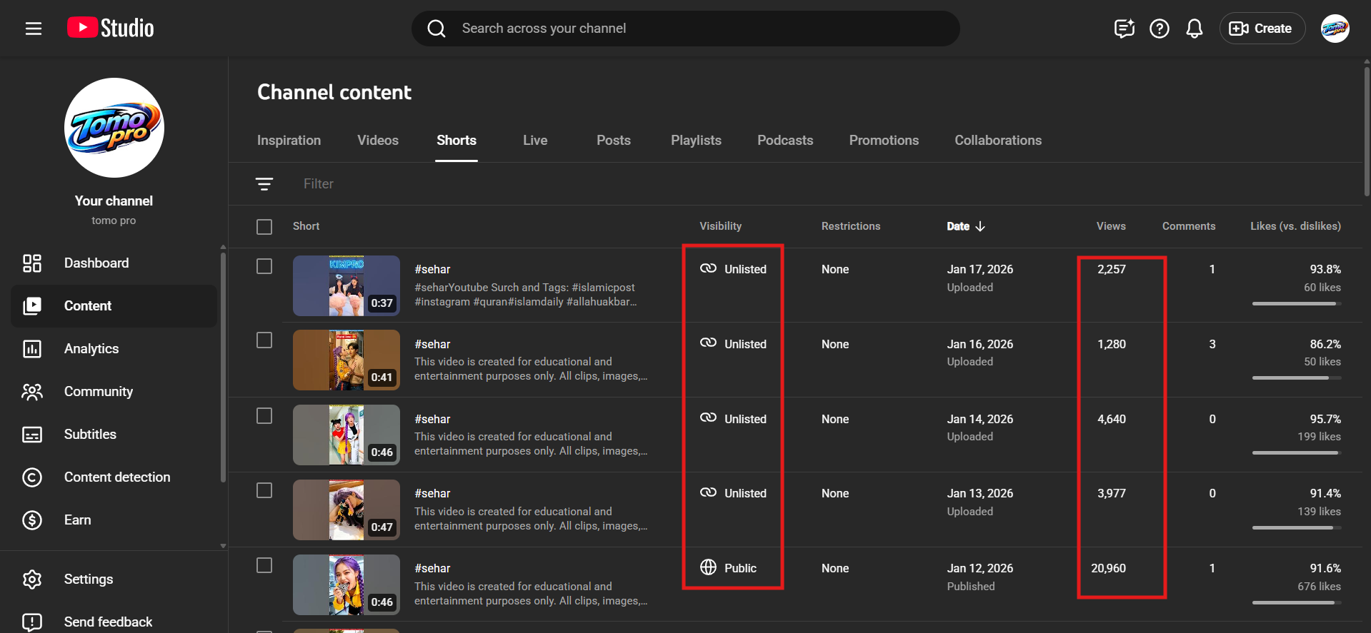 ✅ Some/ All VIDEOS UNLISTED BCS THEY HAD MUSIC WHICH IS HARAM (Those not attracting any current views left public if any)