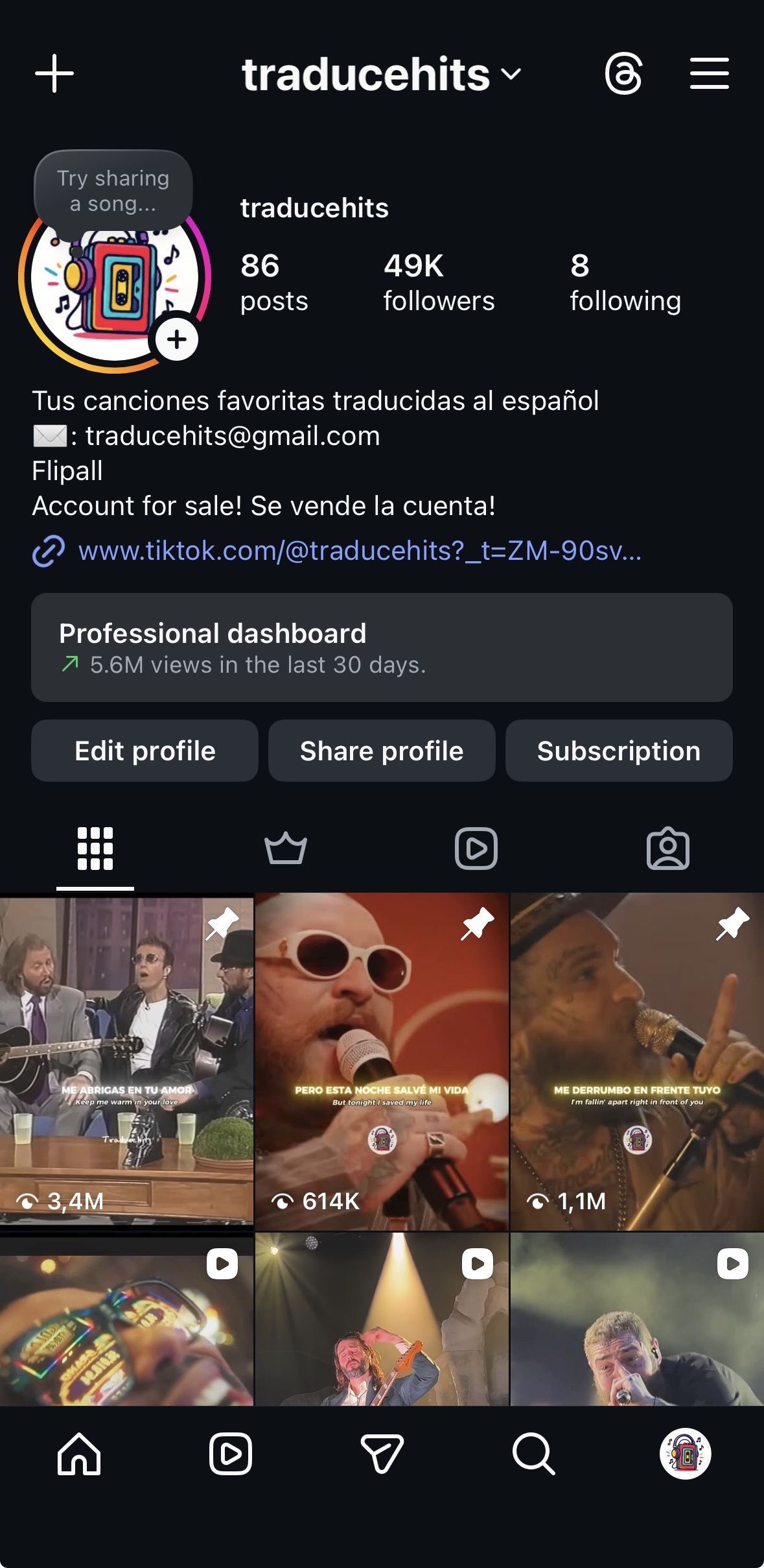 My account is based on music videos transalted from english to spanish. All managed and edited by me. It is able to monetize yet I haven't had the opportunity to do so. You should buy this account because it has a solid base to scale and lovely niche.