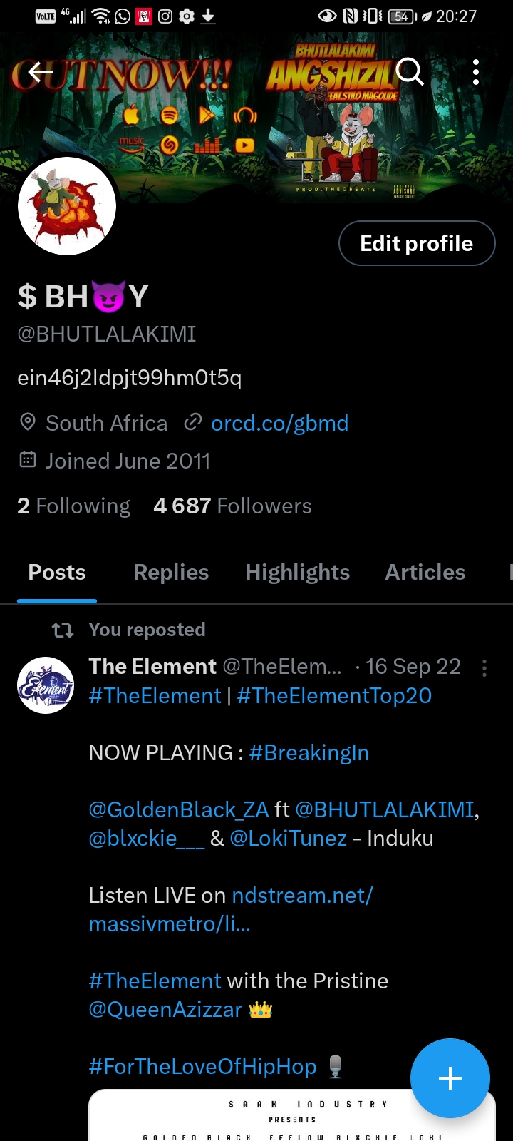 South African music artist account with follows from prominent artists such as Dj Mapjorisa, Nasty C, Rikyrick and more.