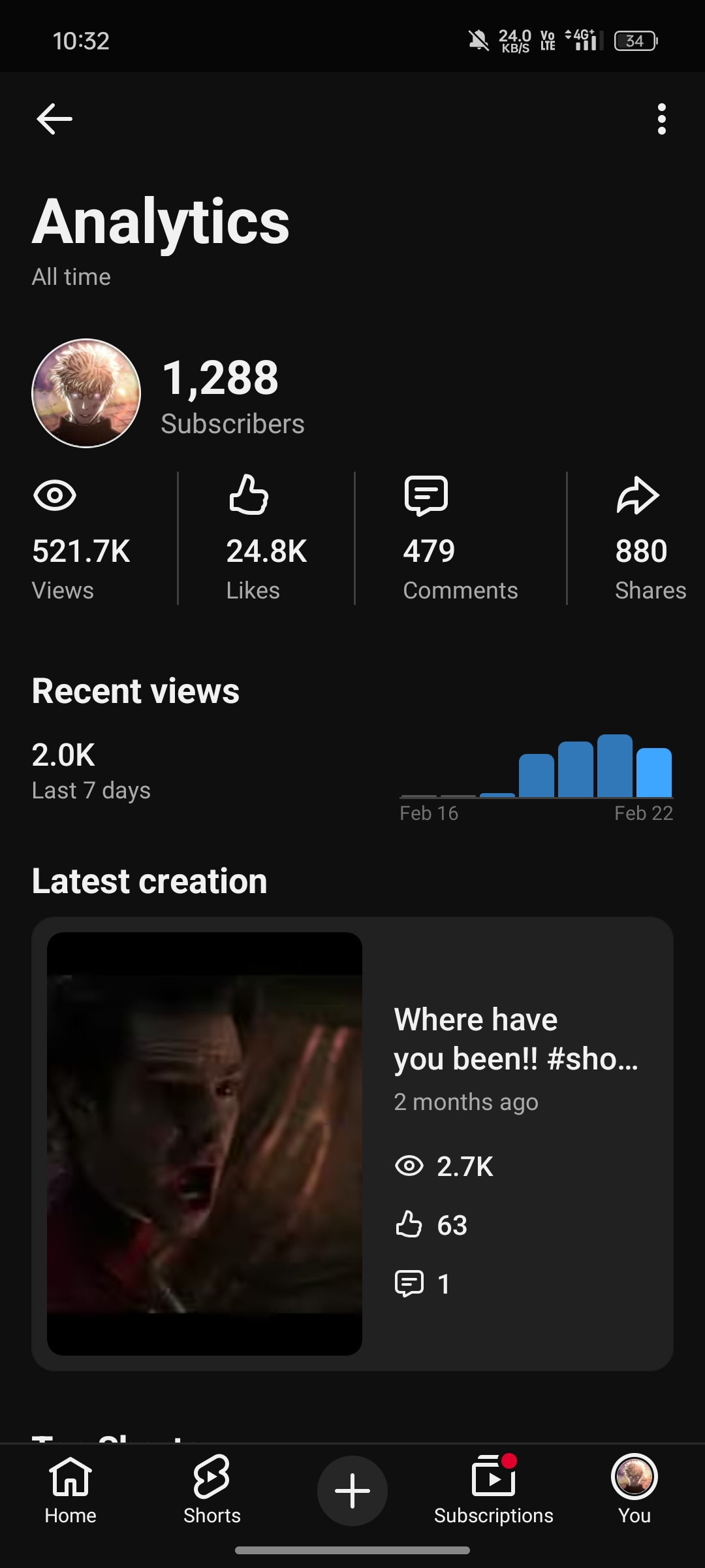 Anime editing YouTube channel with 1,200+ subscribers and over 500,000 total views. The channel focuses on high-quality anime edits and has an engaged audience interested in anime content.